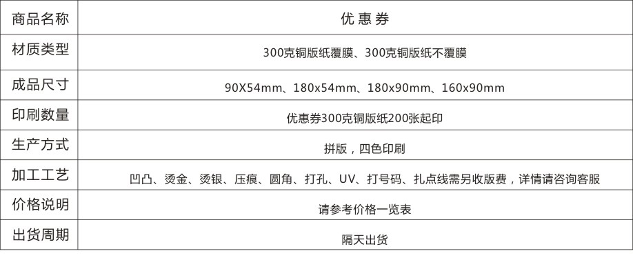 優惠券材質:300克銅版紙